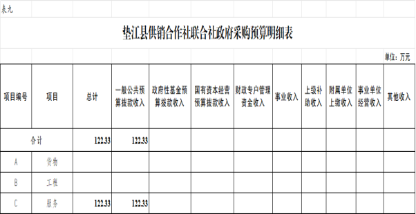 (二)政府采购情况。所属各预算单位政府采购预算总额122.33万元:政府采购货物预算0万元、政府采购工程预算0万元、政府采购服务预算122.33万元;其中一般公共预算拨款政府采购122.33万元:政府采购货物预算0万元、政府采购工程预算0万元、政府采购服务预算122.33万元。