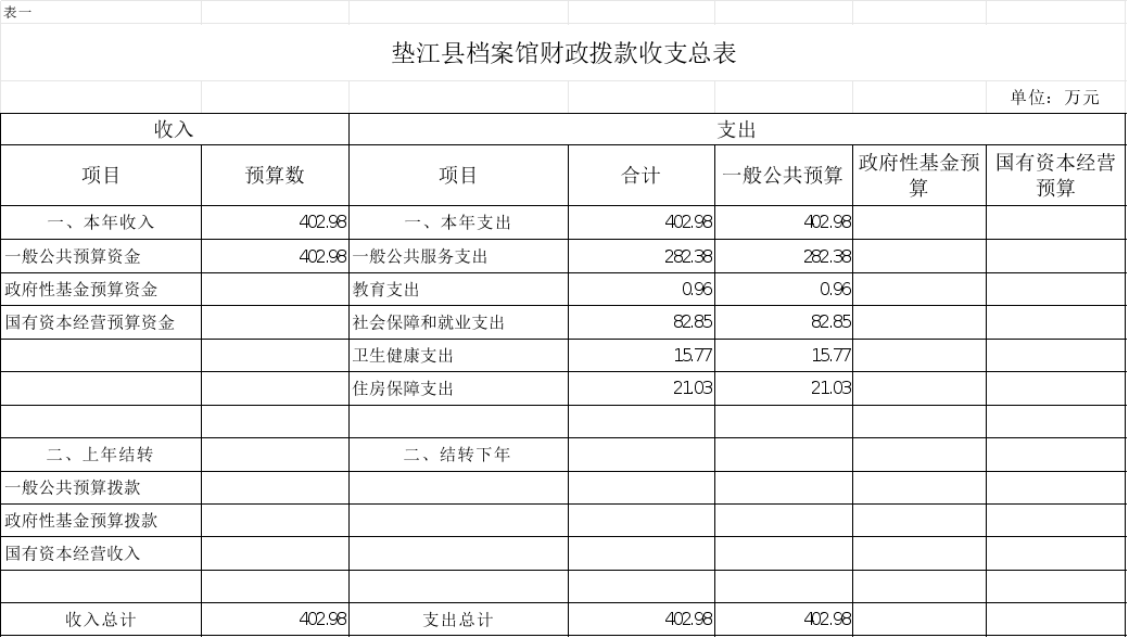 附表:1.垫江县档案馆财政拨款收支总表