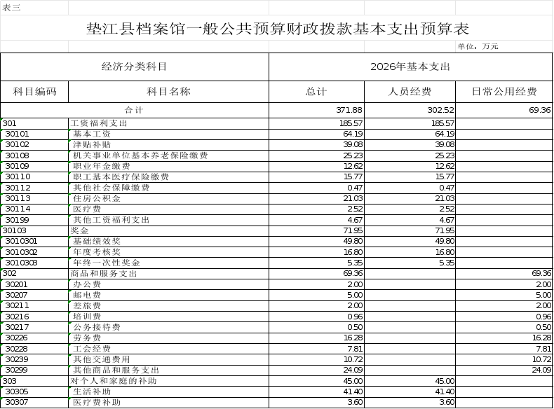 3.垫江县档案馆一般公共预算财政拨款基本支出预算表