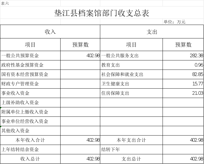 6.垫江县档案馆部门收支总表