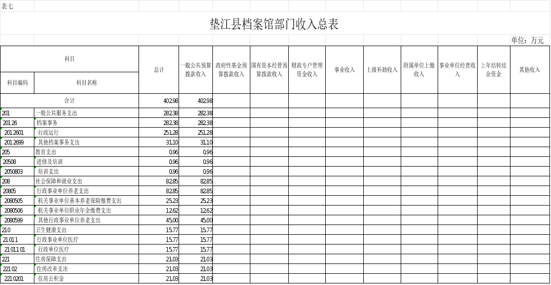 7.垫江县档案馆部门收入总表