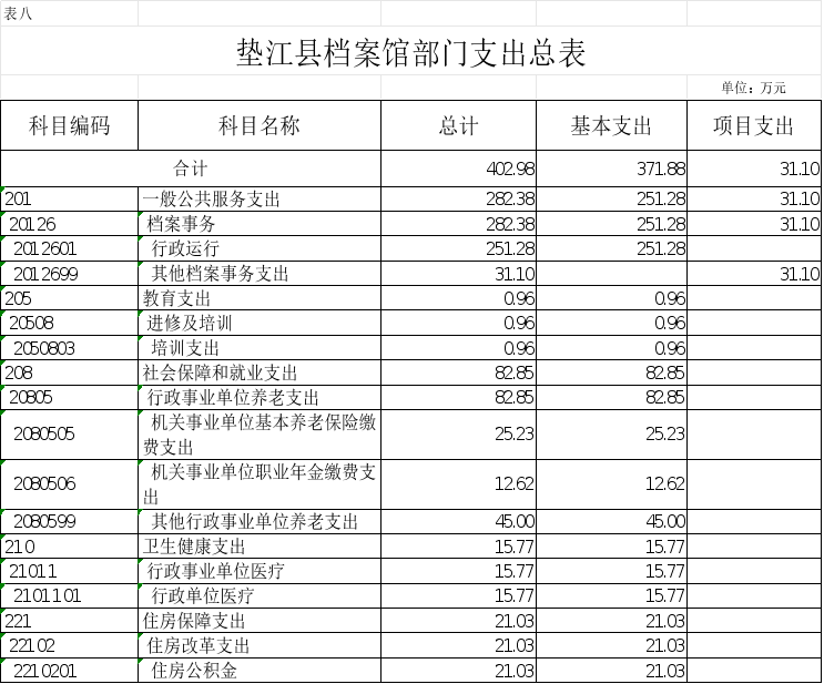 8.垫江县档案馆部门支出总表
