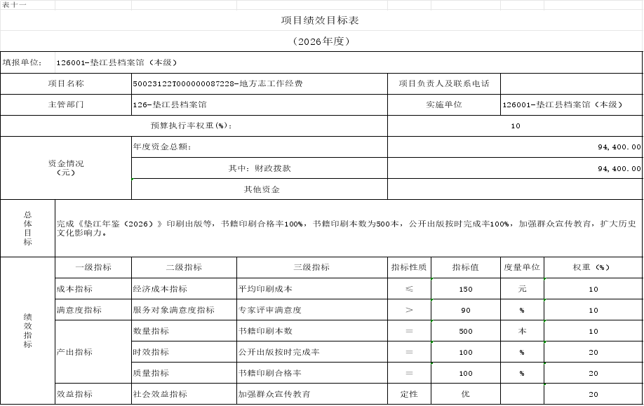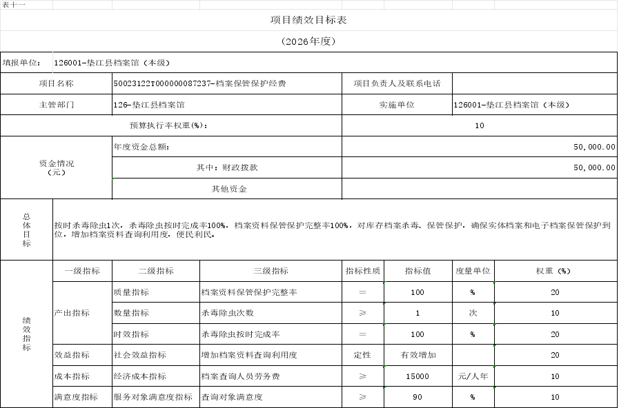 11.垫江县档案馆2026年项目绩效目标表