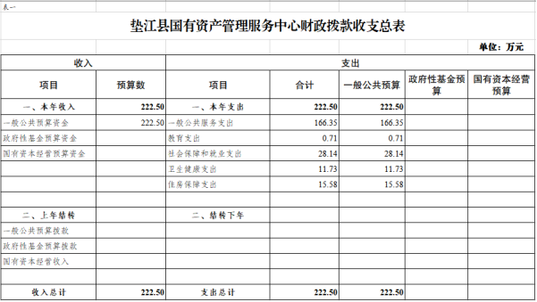 附表:1.垫江县国有资产管理服务中心财政拨款收支总表