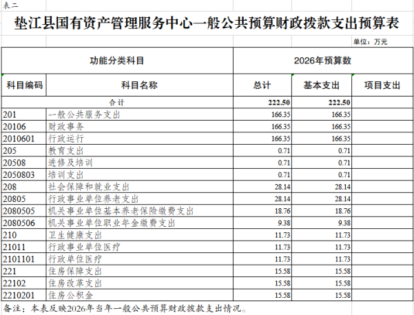 2.垫江县国有资产管理服务中心一般公共预算财政拨款支出预算表