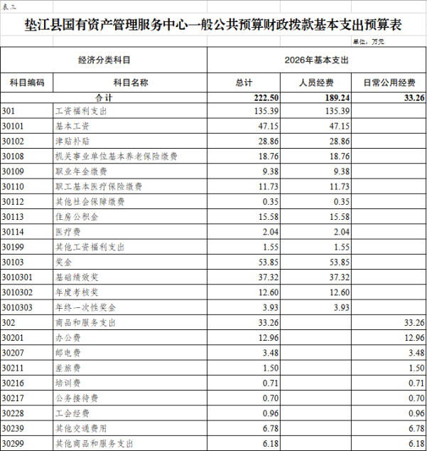 3.垫江县国有资产管理服务中心一般公共预算财政拨款基本支出预算表
