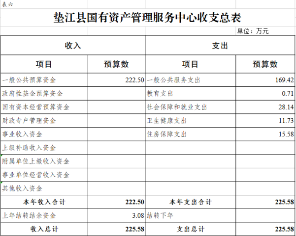 6.垫江县国有资产管理服务中心部门收支总表