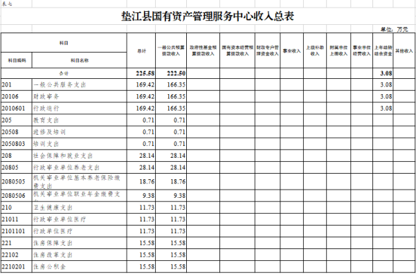 7.垫江县国有资产管理服务中心部门收入总表