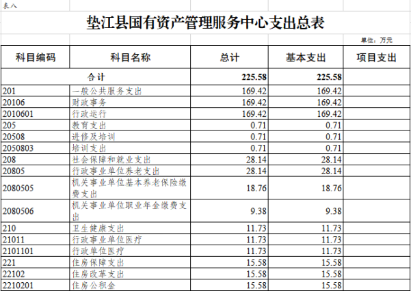 8.垫江县国有资产管理服务中心部门支出总表
