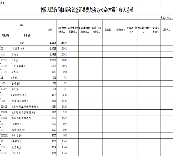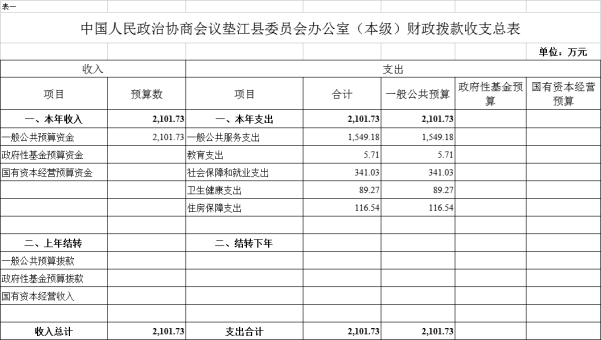 附表:1.中国人民政治协商会议垫江县委员会办公室(本级)财政拨款收支总表
