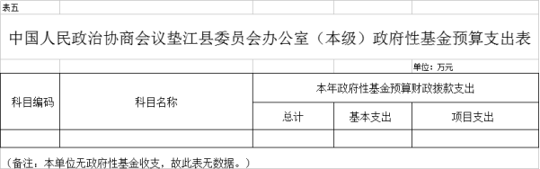 5.中国人民政治协商会议垫江县委员会办公室(本级)政府性基金预算支出表