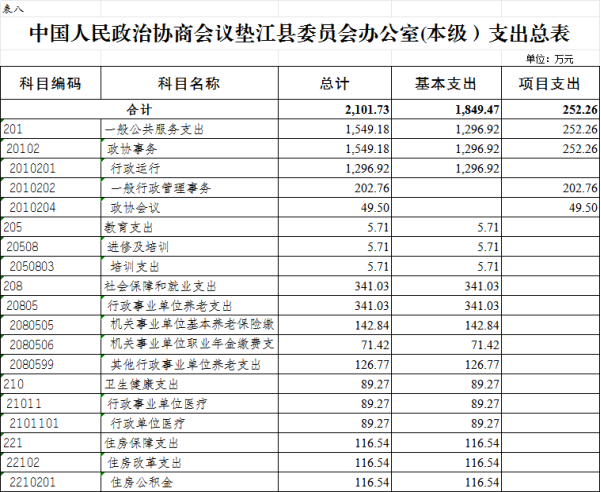 8.中国人民政治协商会议垫江县委员会办公室(本级)支出总表