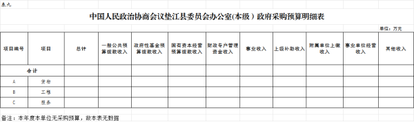 (二)政府采购情况。所属各预算单位政府采购预算总额万元:政府采购货物预算0 万元、政府采购工程预算0 万元、政府采购服务预算 0 万元;其中一般公共预算拨款政府采购 0 万元:政府采购货物预算 0 万元、政府采购工程预算 0 万元、政府采购服务预算0万元。