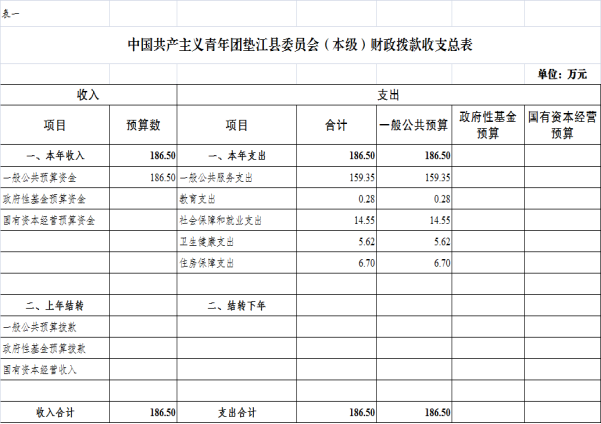附表:1.中国共产主义青年团垫江县委员会(本级)财政拨款收支总表
