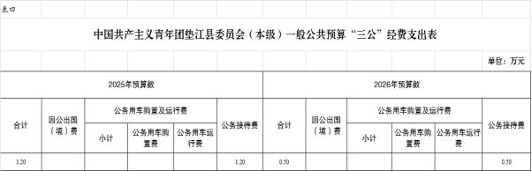 4.中国共产主义青年团垫江县委员会(本级)一般公共预算“三公”经费支出表