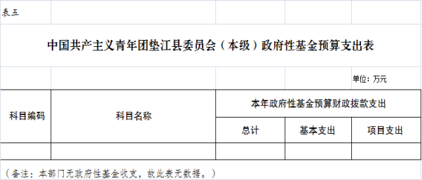 5.中国共产主义青年团垫江县委员会(本级)政府性基金预算支出表