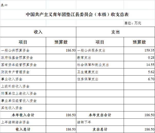 6.中国共产主义青年团垫江县委员会(本级)收支总表