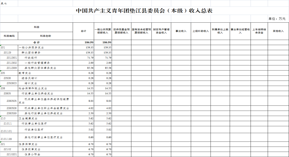 7.中国共产主义青年团垫江县委员会(本级)收入总表