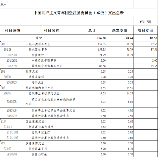 8.中国共产主义青年团垫江县委员会(本级)支出总表