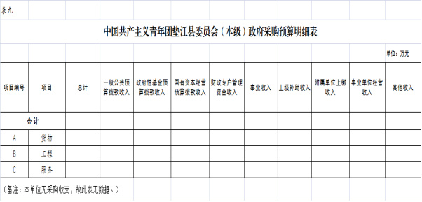9.中国共产主义青年团垫江县委员会(本级)政府采购明细表