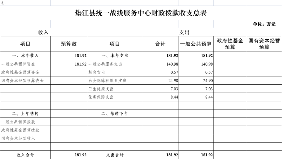 附表:1.垫江县统一战线服务中心财政拨款收支总表