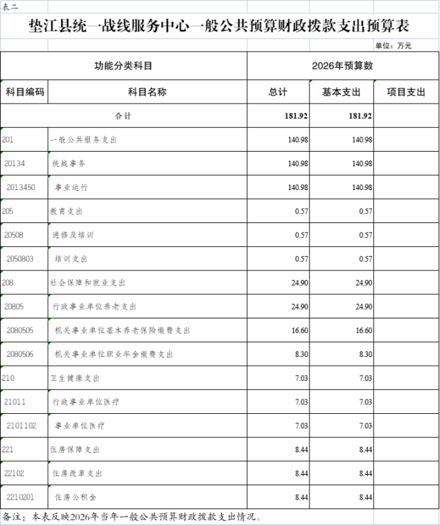 2.垫江县统一战线服务中心一般公共预算财政拨款支