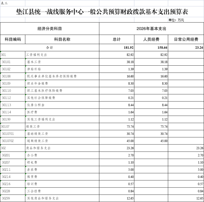 垫江县统一战线服务中心2026年单位预算情况说明