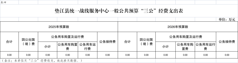 4.垫江县统一战线服务中心一般公共预算“三公”经费