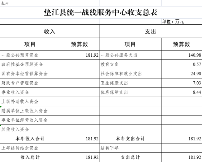 6.垫江县统一战线服务中心收支总表