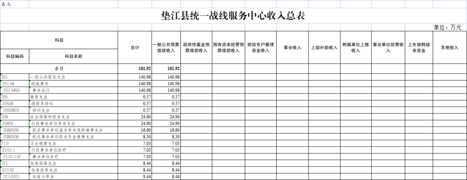 7.垫江县统一战线服务中心收入总表