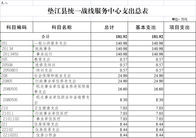 8.垫江县统一战线服务中心支出总表