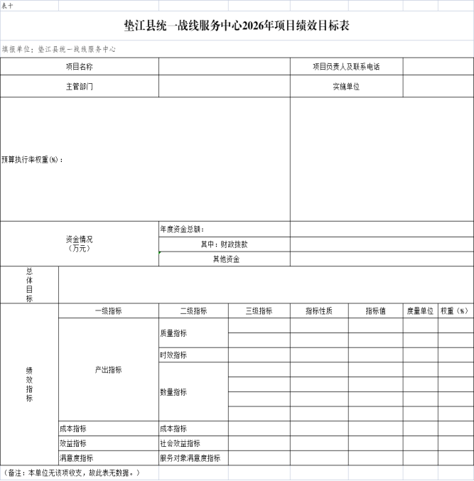 10.垫江县统一战线服务中心2026年项目绩效目标表