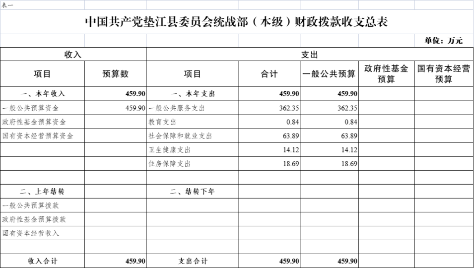 附表:1.中国共产党垫江县委员会统战部(本级)财政拨款