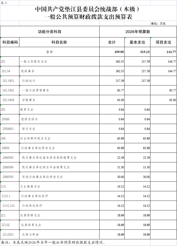 2.中国共产党垫江县委员会统战部(本级)一般公共