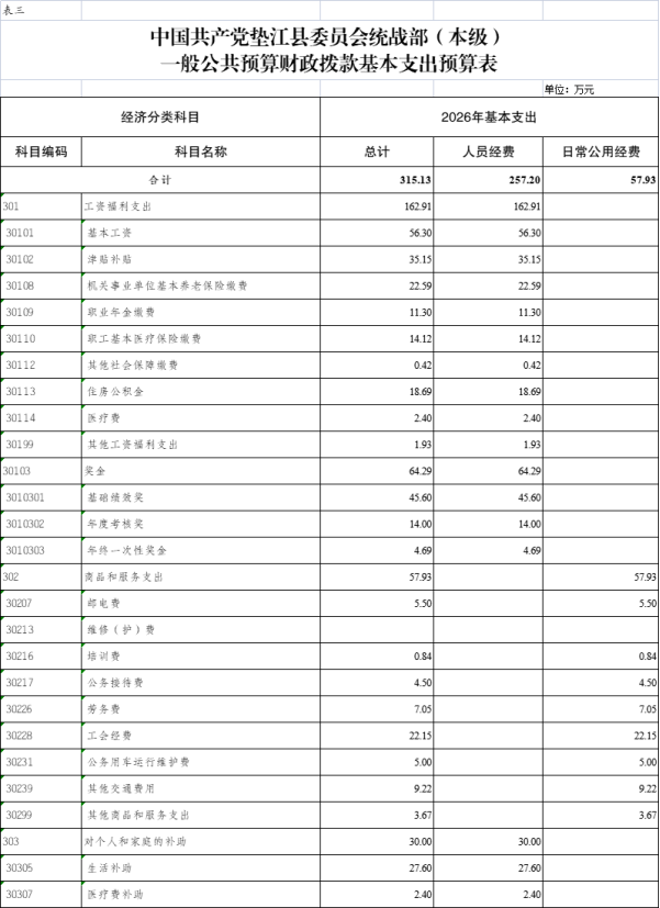 3.中国共产党垫江县委员会统战部(本级)一般公共