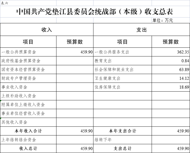 6.中国共产党垫江县委员会统战部(本级)收支总表