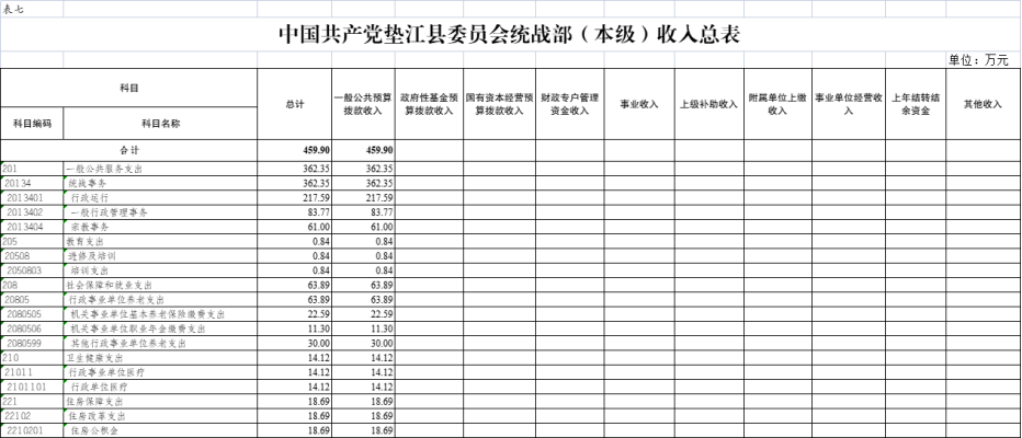 7.中国共产党垫江县委员会统战部(本级)收入总表
