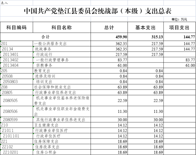 8.中国共产党垫江县委员会统战部(本级)支出总表