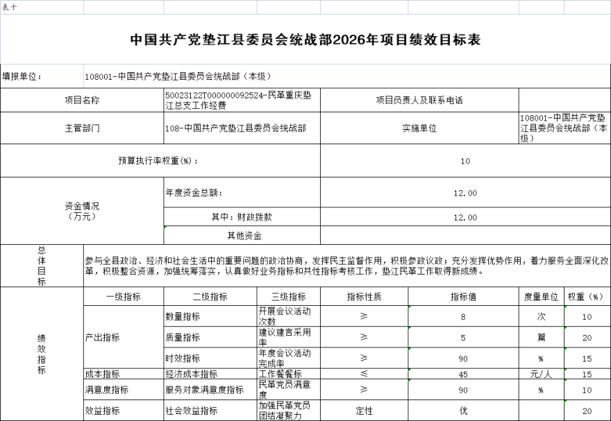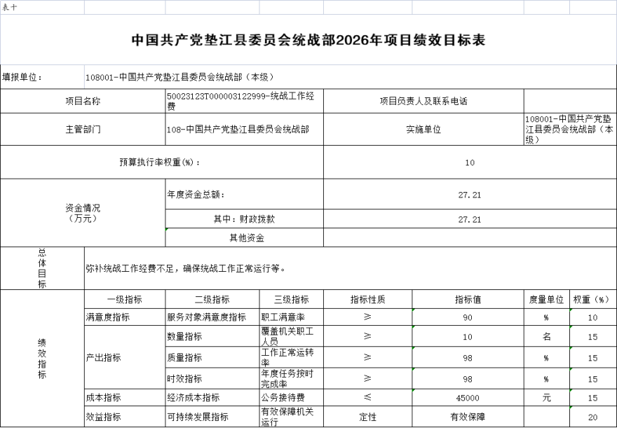 10.中国共产党垫江县委员会统战部(本级)2026年项