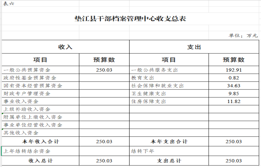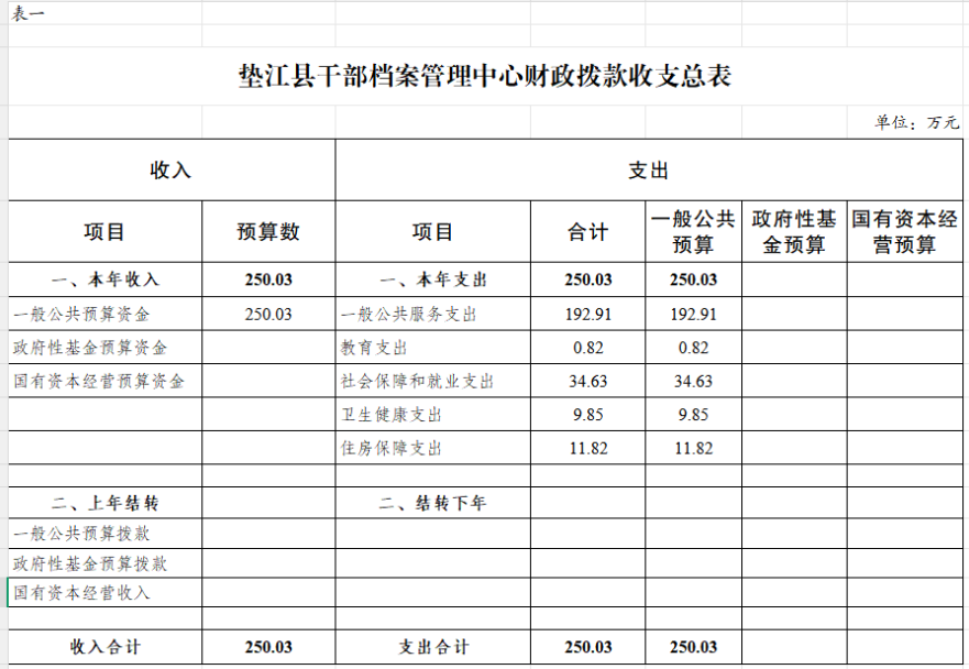 附表:1.垫江县干部档案管理中心财政拨款收支总表