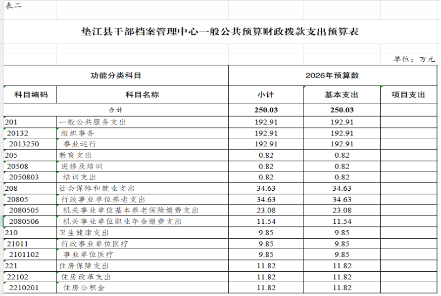 2.垫江县干部档案管理中心一般公共预算财政拨款支