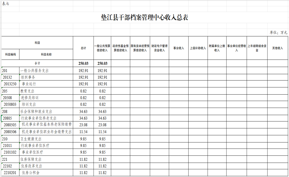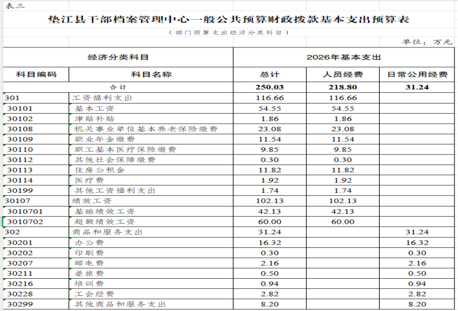 3.垫江县干部档案管理中心一般公共预算财政拨款基