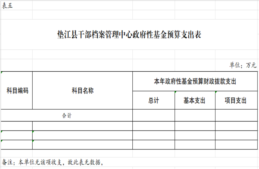5.垫江县干部档案管理中心政府性基金预算支出表