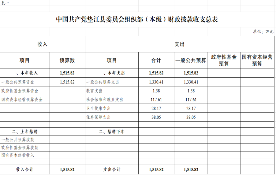 附表:1.中国共产党垫江县委员会组织部(本级)财政拨款