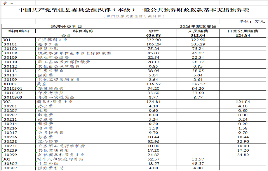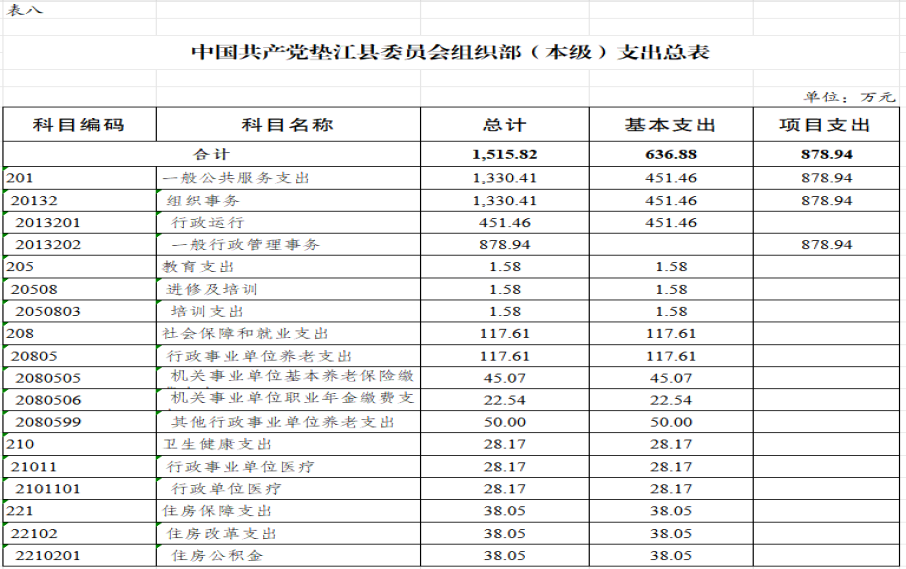 3.中国共产党垫江县委员会组织部(本级)一般公共