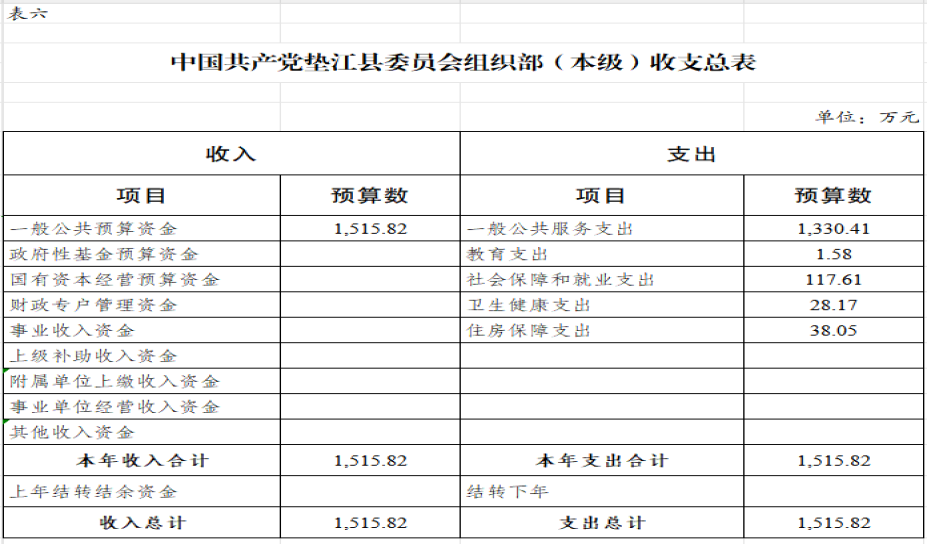 6.中国共产党垫江县委员会组织部(本级)收支总表