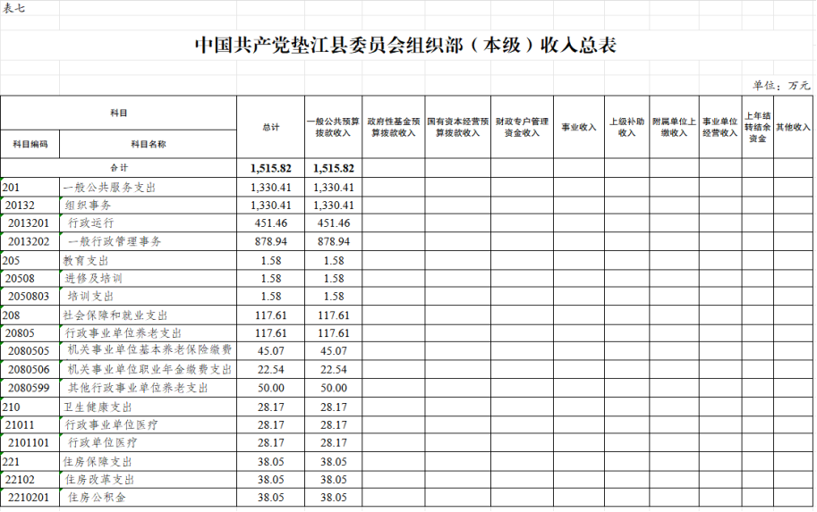 7.中国共产党垫江县委员会组织部(本级)收入总表