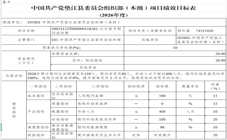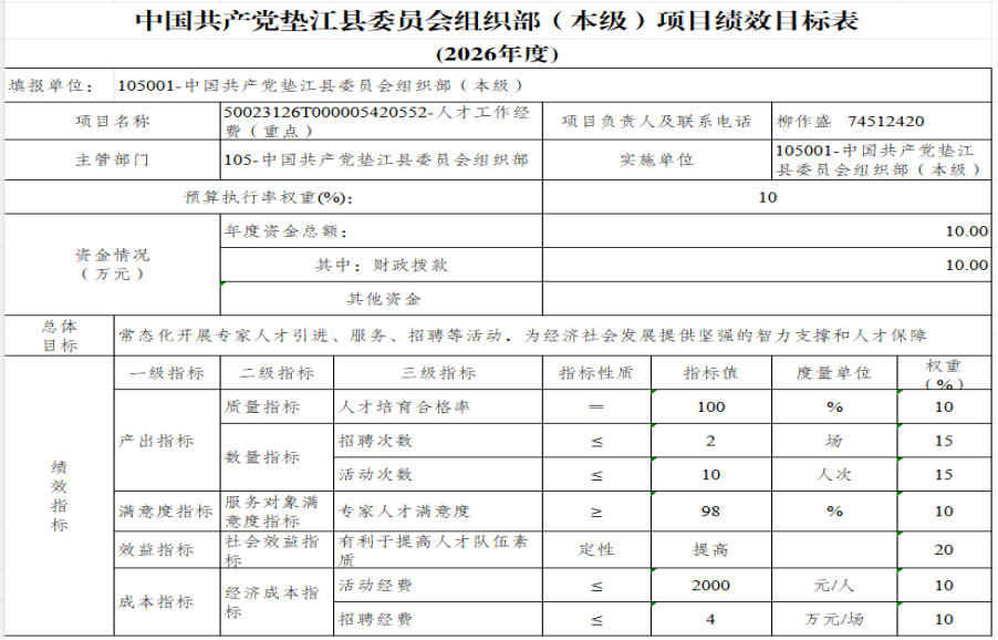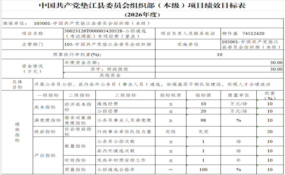 10.中国共产党垫江县委员会组织部(本级)2026年项