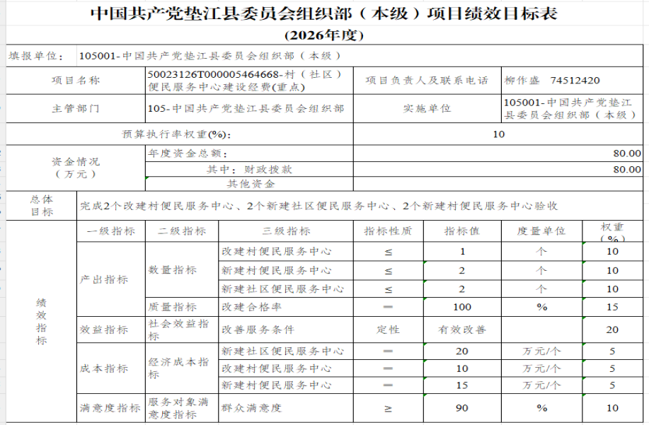 (三)绩效目标设置情况。2026年项目支出均实行了绩效目标管理,涉及一般公共预算当年财政拨款878.94万元。