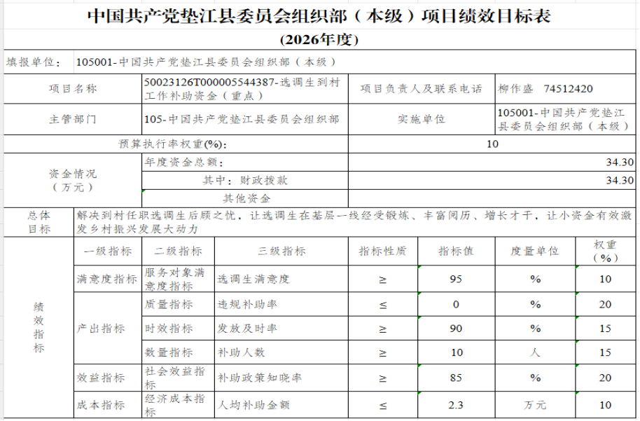 5.中国共产党垫江县委员会组织部(本级)政府性基